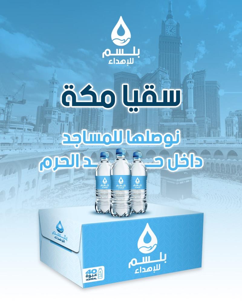 - {يتم توصيل وتوزيع كراتين المياه إلى المساجد داخل حد الحرم}